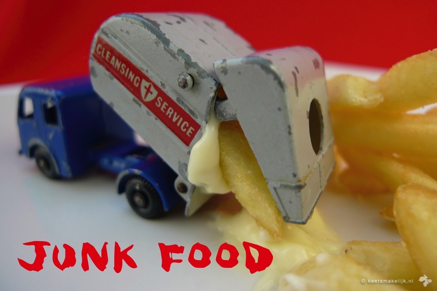 Junkfood betekent vuilnisvoer. Het is verpakking zonder inhoud, een lading lege calorieën. Geen vitaminen, mineralen of prachtige micro-nutriënten van moeder natuur. Wel bakken met zout, suiker en snelle koolhydraten. Okee, als je een kater hebt van hier tot Sinterklaas kan dat helpen. Maar dat is ook het enige moment waarop je je beter voelt na het eten van junkfood.